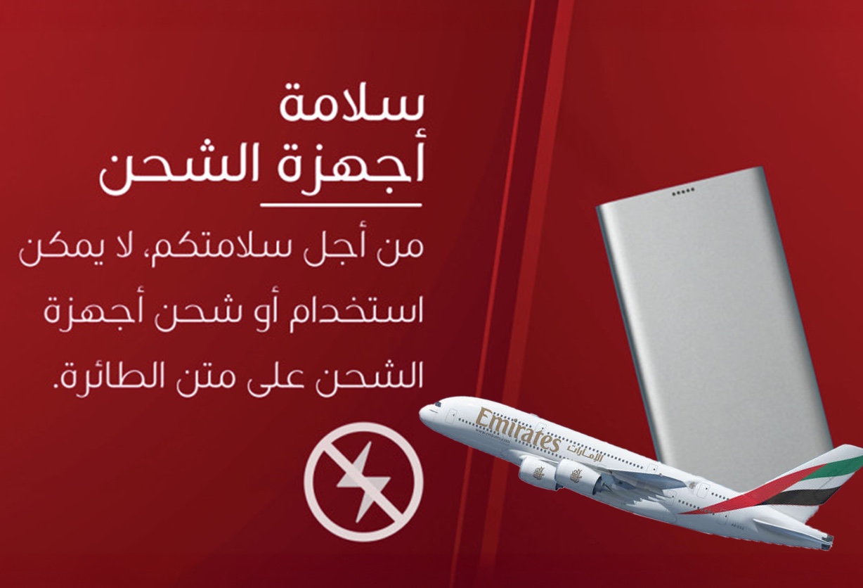 بعد مراجعة شاملة لإجراءات السلامة، تتخذ طيران الإمارات موقفاً حازماً واستباقياً للحد من المخاطر المتعلقة بوحدات شحن الأجهزة المحمولة على متن الطائرة.